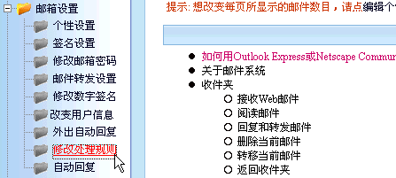 1> 登錄郵箱進入首頁,點擊"郵箱設置"下的"修改處理規(guī)則"。
