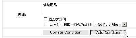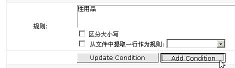 4> 選擇好范圍后,進行制定規(guī)則。填入"性用品"并點"Add Condition"